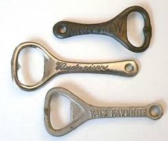A This one is getting a little long in the tooth, like its users (such as me), who can remember when beer always came in bottles fitted with caps that needed a special tool to open them (though the more macho or foolish would show off by opening them with their teeth; gripping bottle tops in a vice between door and doorframe was a trick for emergencies, but only when the door belonged to somebody else). The standard bottle opener was made of metal, with a roughly round, oval or triangular open shape at one end to grip the cap.